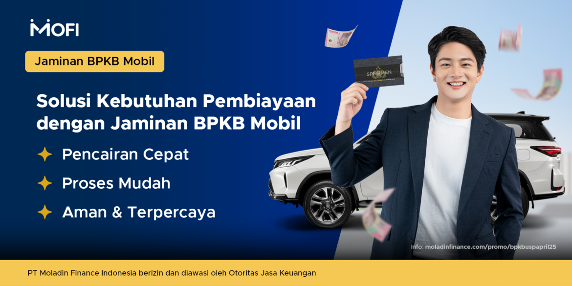 Manfaatkan BPKB Mobil Anda sebagai jaminan untuk mendapatkan dana yang cepat dan mudah. Moladin Finance menyediakan pembiayaan multiguna dan modal usaha dengan proses cepat, fleksibel, aman dan terpercaya.