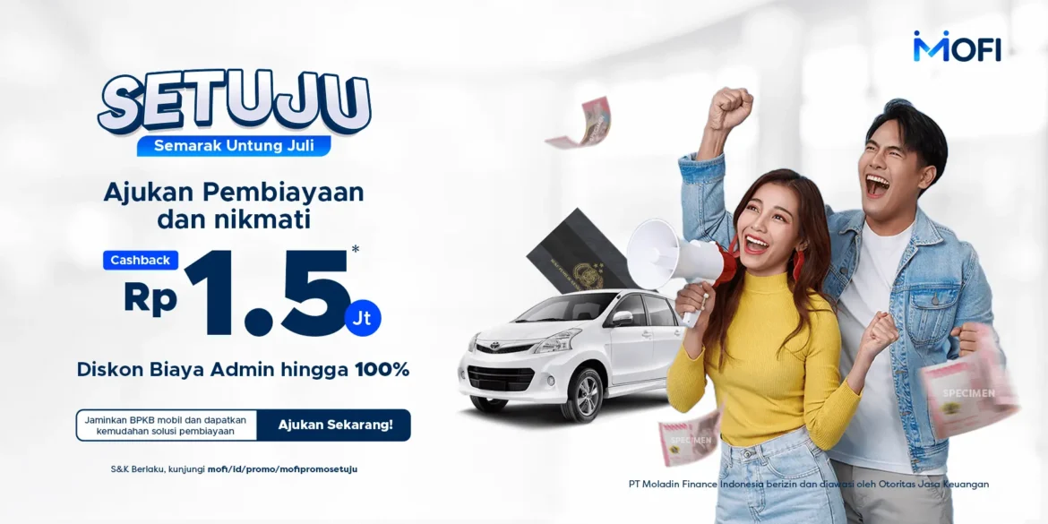 Syarat Manfaat Pembiayaan Transaksi sebesar < Rp100.000.000 Mendapatkan cashback (Cashback diberikan setelah cicilan pertama, tanpa ada keterlambatan bayar lewat dari 7 hari) sebesar Rp 500.000 dan diskon biaya admin 50% hanya berlaku untuk registrasi via mofi.id Transaksi sebesar < Rp200.000.000 Cashback sebesar Rp1.000.000 dan diskon biaya admin 100% (Cashback diberikan setelah cicilan pertama, tanpa ada keterlambatan bayar lewat dari 7 hari), hanya berlaku untuk registrasi via mofi.id Transaksi sebesar > Rp200.000.000 Cashback sebesar Rp1.500.000 dan diskon biaya admin 100% (Cashback diberikan setelah cicilan pertama, tanpa ada keterlambatan bayar lewat dari 7 hari), hanya berlaku untuk registrasi via mofi.id - Apabila Peserta berhak untuk mendapatkan Manfaat Pembiayaan berupa suku bunga ringan dan/atau potongan biaya admin, maka MOFI akan memberikan kedua Manfaat Pembiayaan tersebut secara otomatis pada Transaksi melalui sistem MOFI.